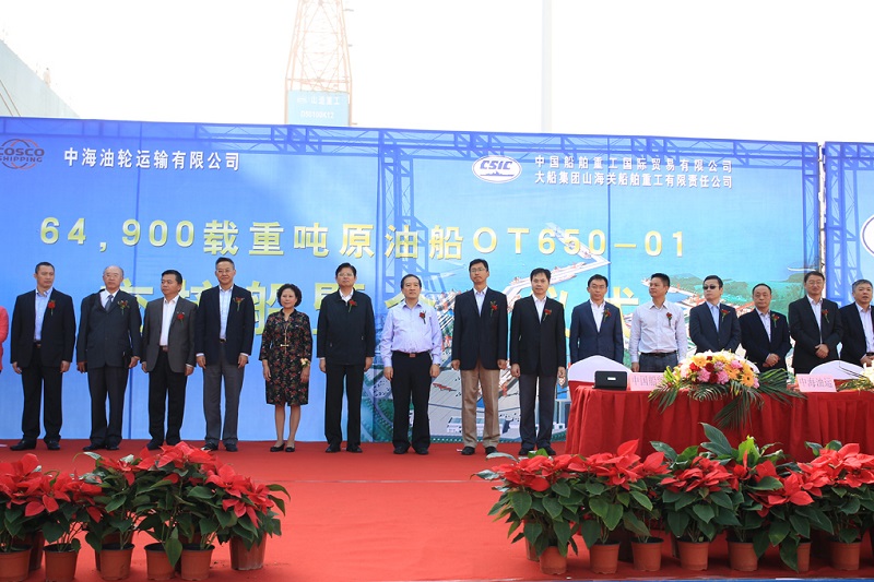 In this golden autumn with laurel fragrance wafted by cool breeze, SHGIC under DSIC has named and delivered her first 64900 DWT crude oil carrier constructed for COSCO Shipping on Sep.30. This ship was named Tianhong Constellation. CSIC GM Sun Bo, COSCO Shipping DGM Ding Nong, CCS Vice President Sun Feng, COSCO Shipping Energy Transport Co., Ltd. GM Liu Hanbo, and DSIC GM and SHGIC Chairman Yu Fengping were present at the ceremony. Tripartite representatives on behalf of COSCO Shipping, CSOC and SHGIC under DSIC signed the ship delivery and acceptance protocols respectively.